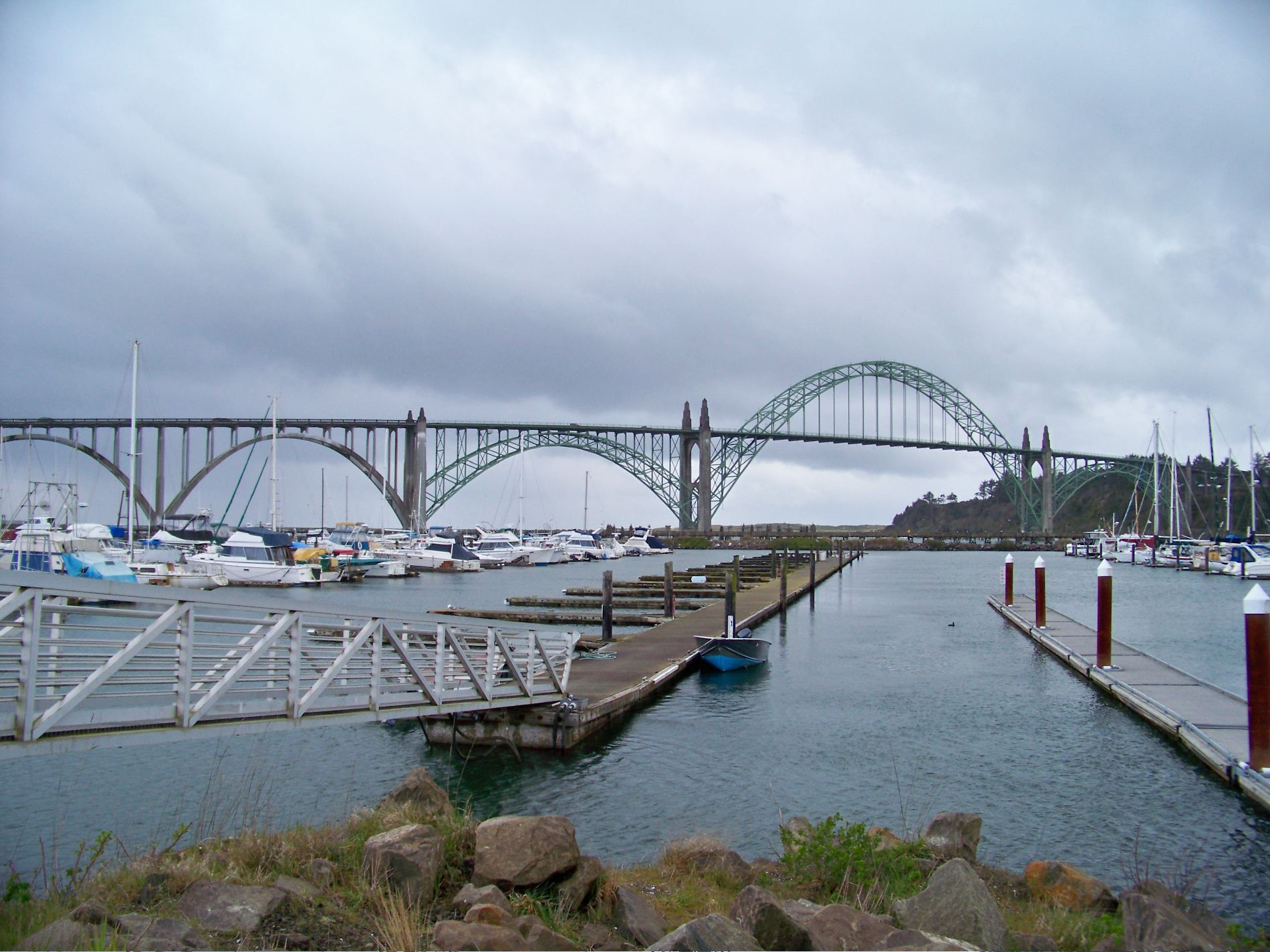 Bridge and harbor in Newport. Clouds are still forecasting more rain, drat!