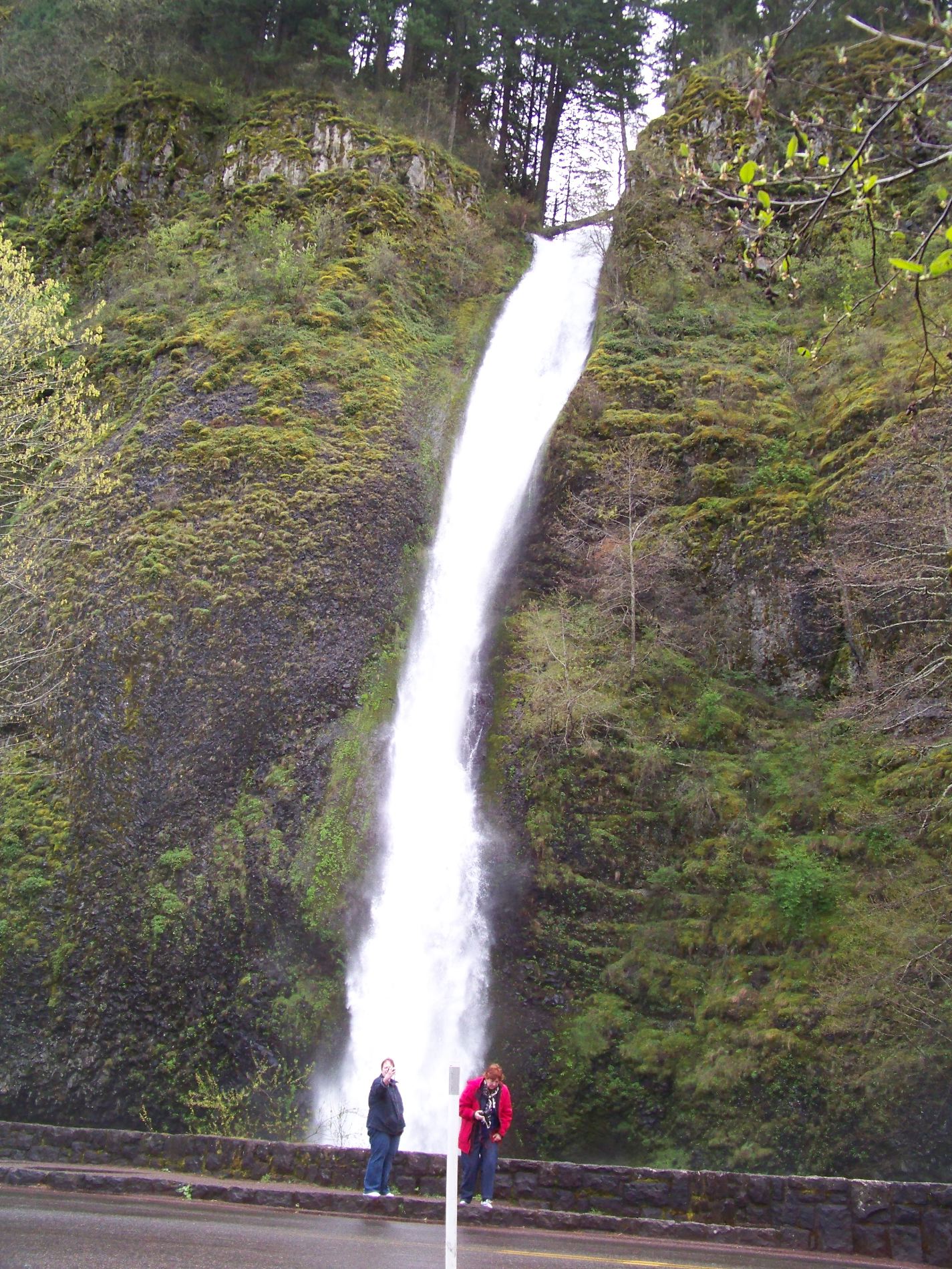 There are many waterfalls along I84 just past Portland. The log atop spanning the falls can be used to cross across!