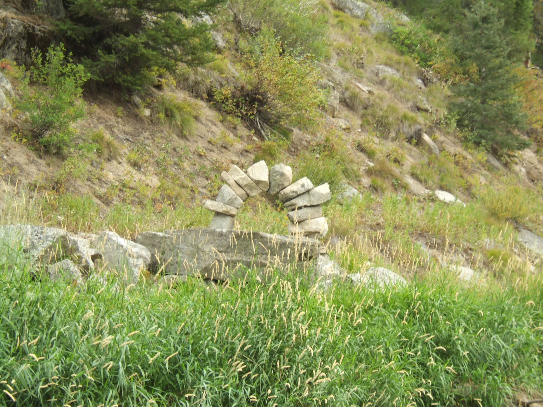 People stop along the river and construct interesting things.