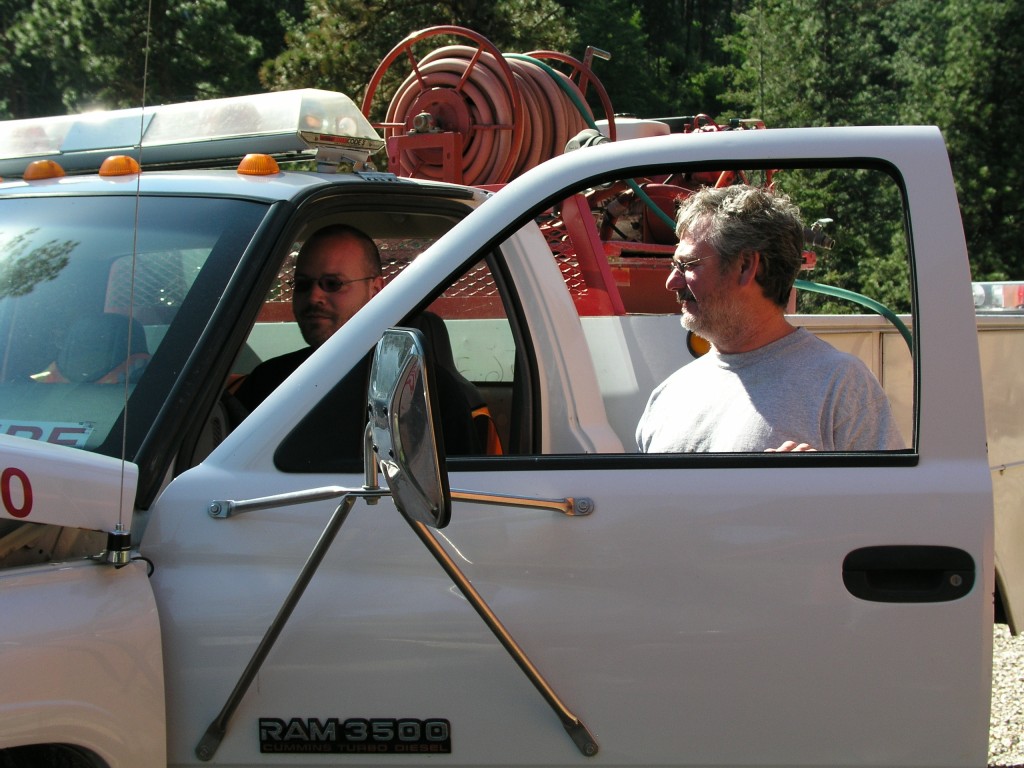 June also brought Mike, Sally and Anthony. Mike and Curtis checking out the fire truck.
