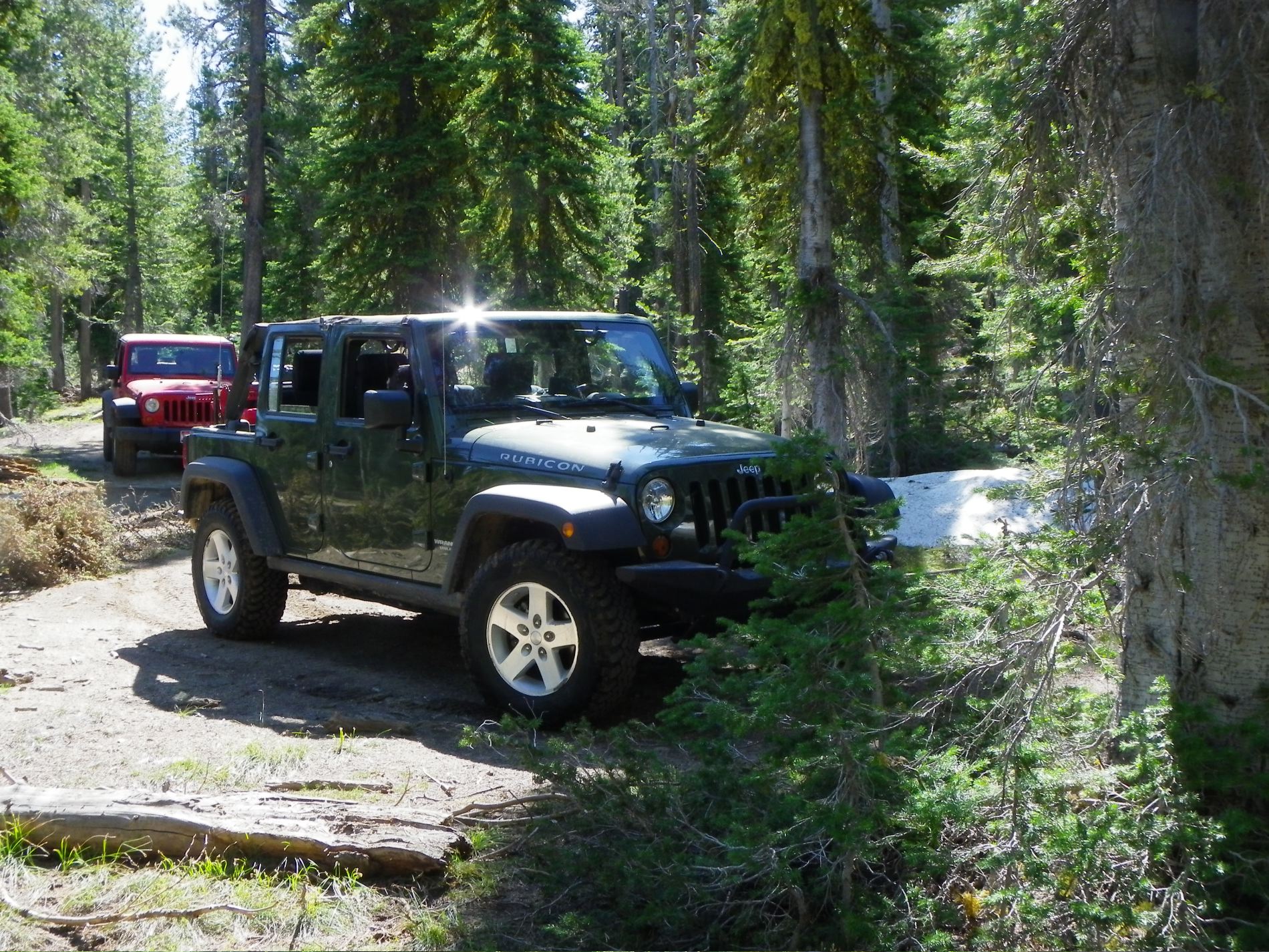 A short stop, probably to get a tree out of the road. Still some snow by the road.